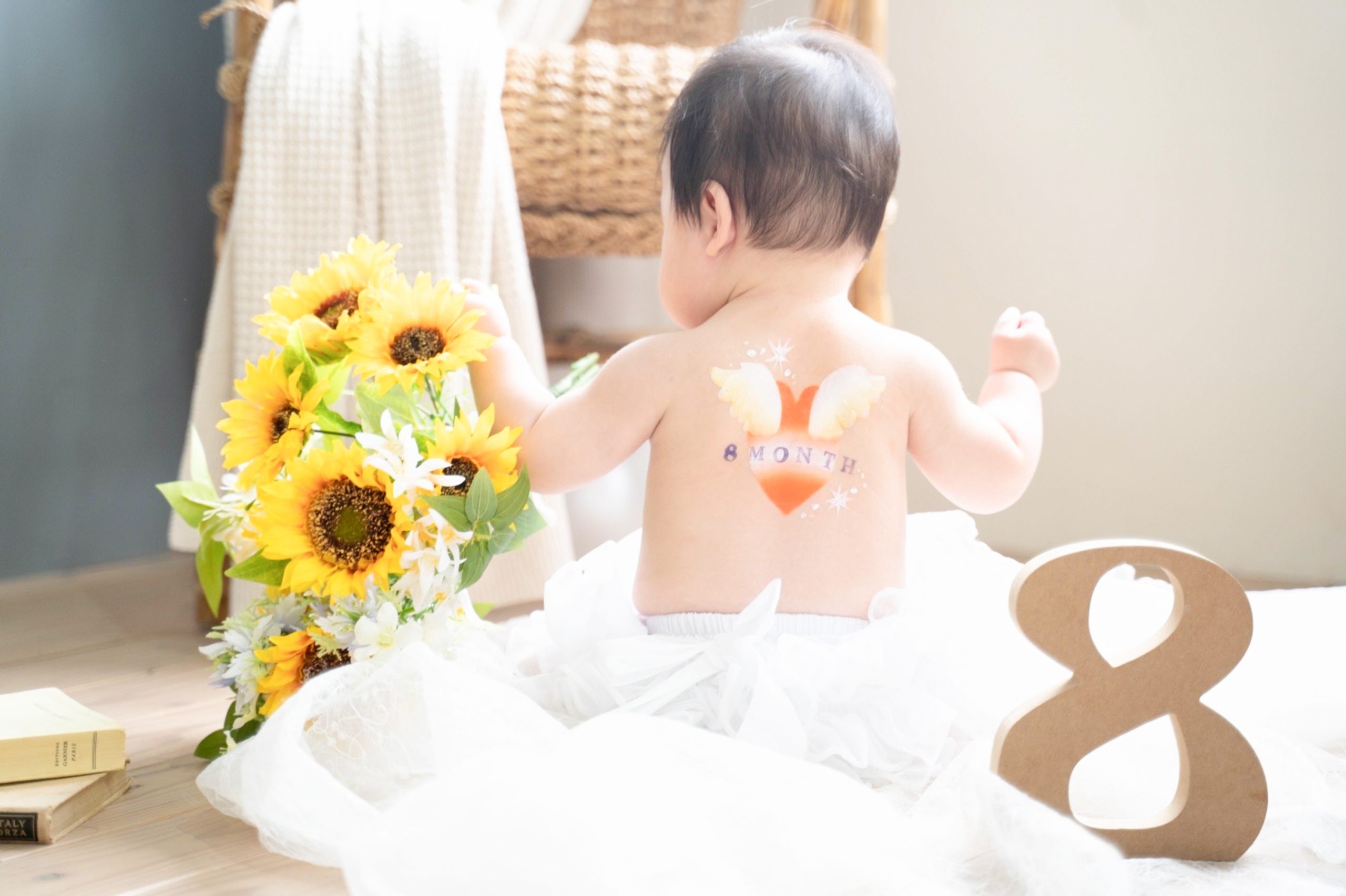 - 天使の羽 + ハートやアルファベット、数字なども追加できます。お名前や月齢を入れることで、より記念に残る素敵なお写真に仕上がります☺️
